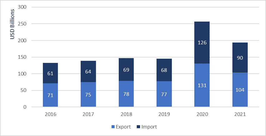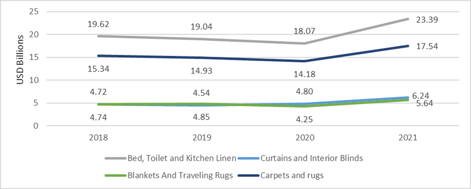 Figure 1: Import and export statistics of the home textiles market