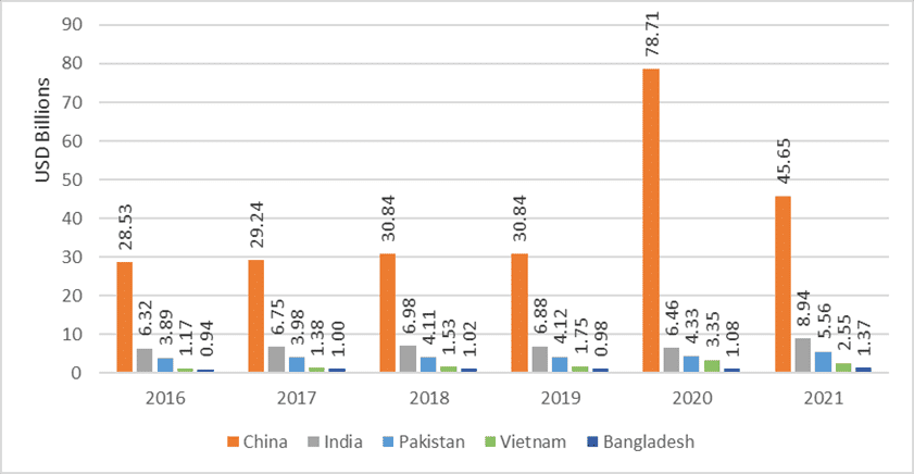 Figure 4: Top Asian countries exporting home textile products