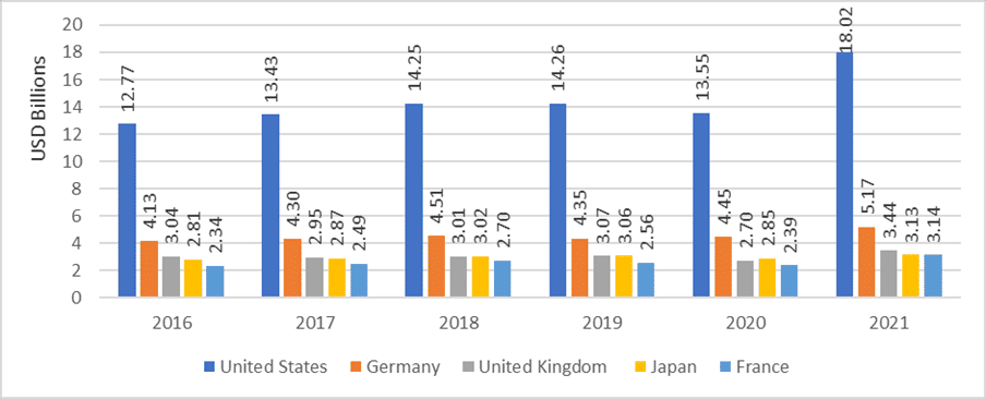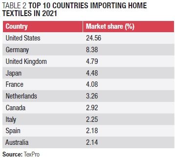 Figure 3: Top importers of home textiles in 2021 (region-wise)